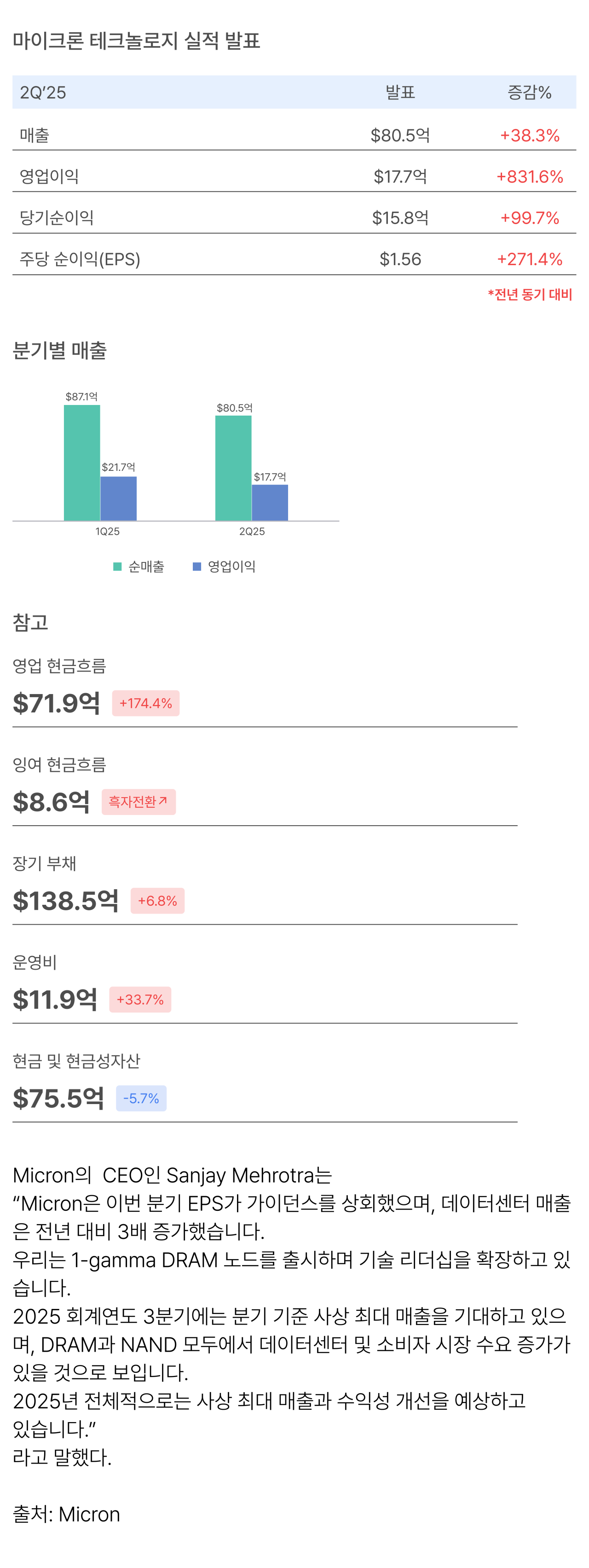 미국 마이크론 테크놀로지 2025년 1분기 실적 발표